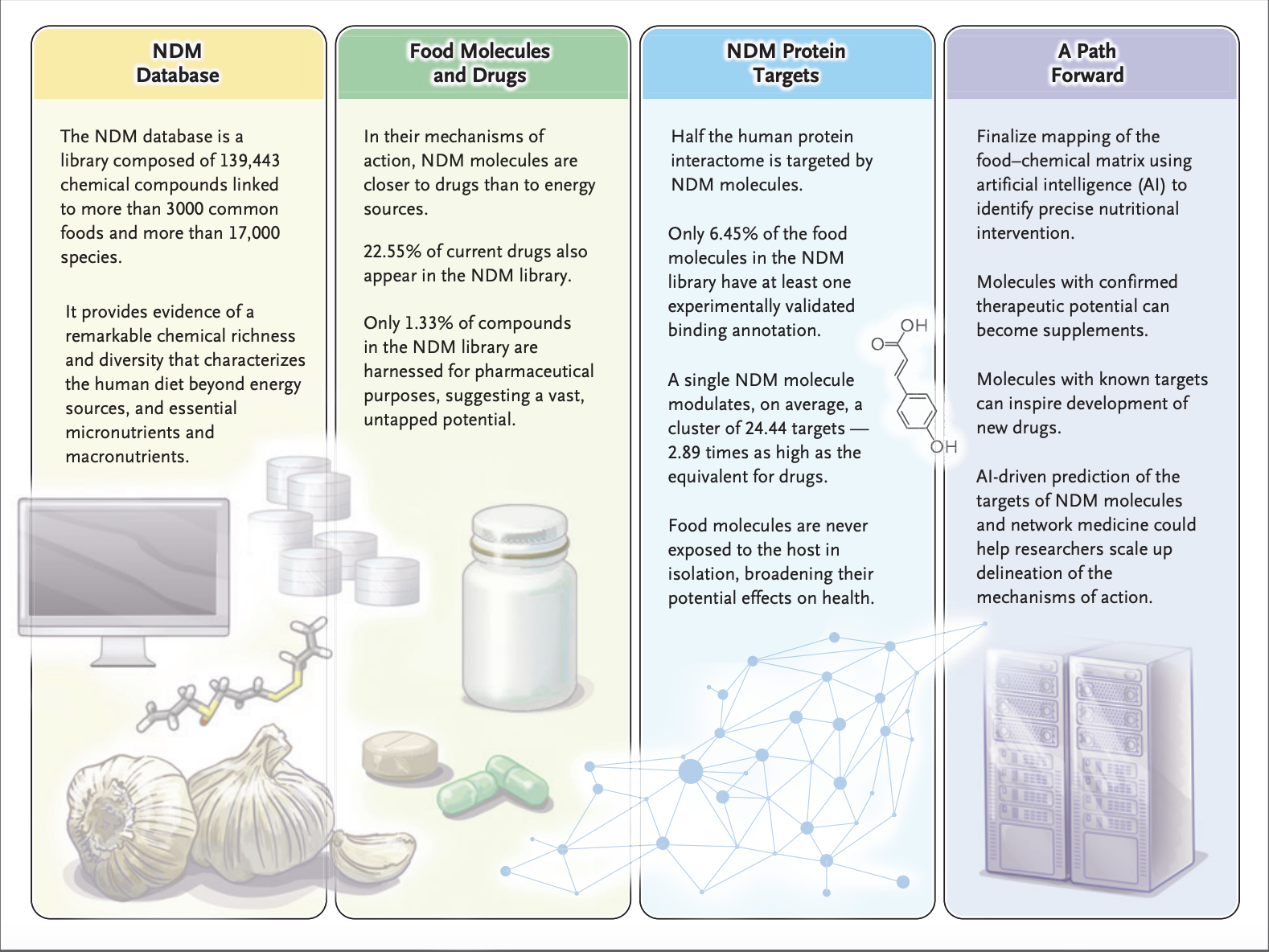 While nutrition science knows about 150 well-documented nutrients, there are approximately 135,000 additional molecules in foods that have health impacts but are not tracked in nutritional databases. Laszlow Barabasi, a physicist and network medicine researcher at Northeastern University and Harvard Medical School, explains how these compounds work in the body, noting that many have therapeutic effects when consumed in specific concentrations. Certain food combinations, like those in the Mediterranean diet, can mitigate negative health effects of red meat, and ultra-processed foods contribute to health issues despite their popularity. Understanding these compounds is important for treating specific conditions, yet the basic principles of a healthy diet remain simple: eat plenty of vegetables, exercise, sleep well, and maintain a balanced diet closest to the Mediterranean model. www.barabasilab.com www.truefood.tech